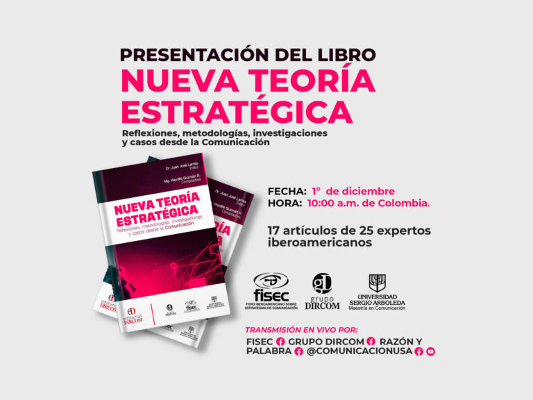 libro Nueva Teoría Estratégica. Reflexiones, metodologías, investigaciones y casos. Luego del trabajo compartido durante un buen tiempo, presentaremos el próximo viernes 1 de diciembre nuestra publicación. Consideramos, desde FISEC, el Grupo DIRCOM y la Maestría en Comunicación de la U. Sergio Arboleda que así realizamos un sentido y merecido homenaje a Rafael Alberto Pérez y su…